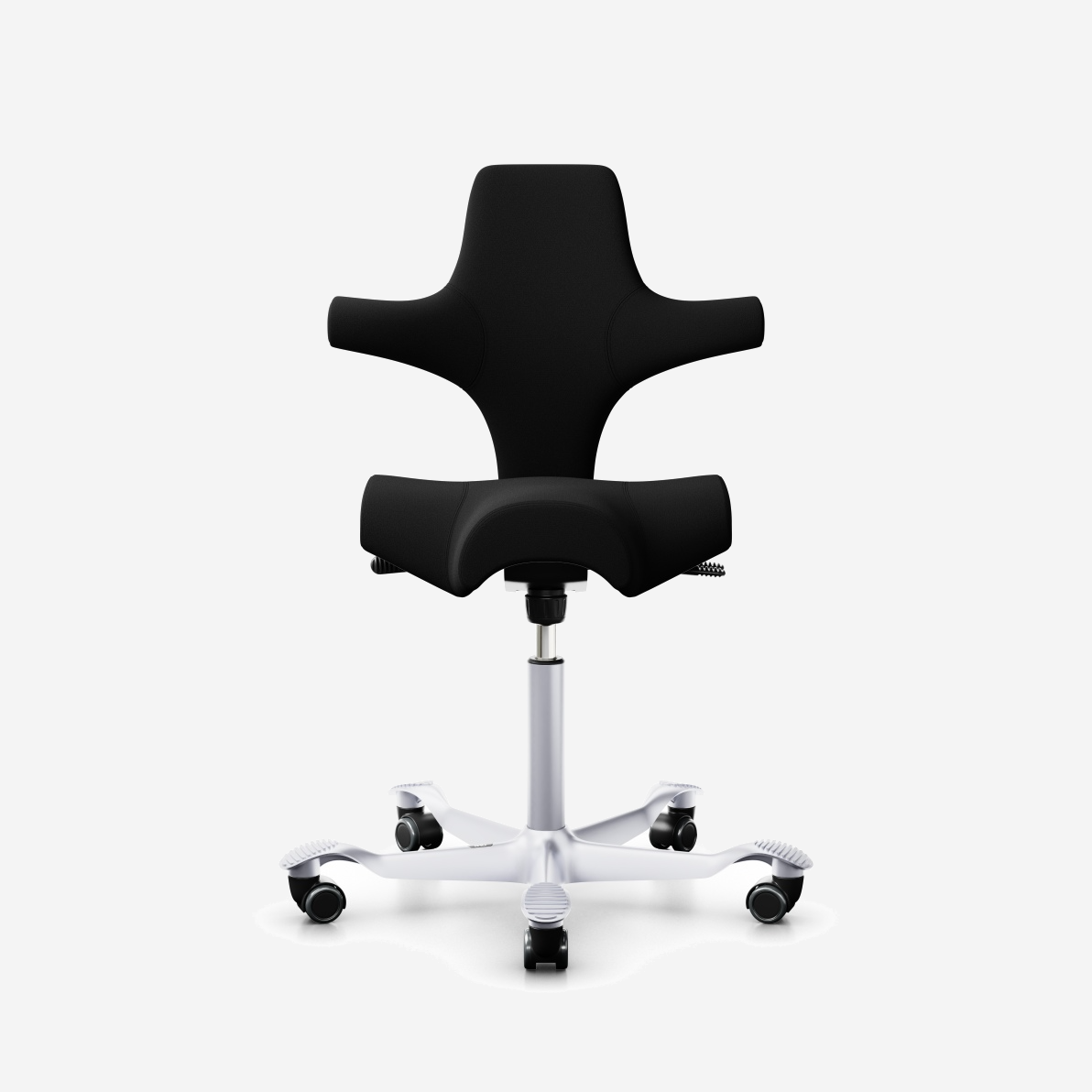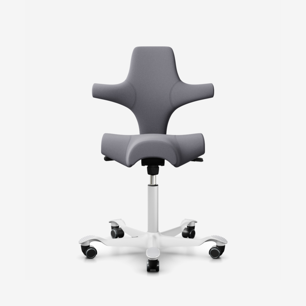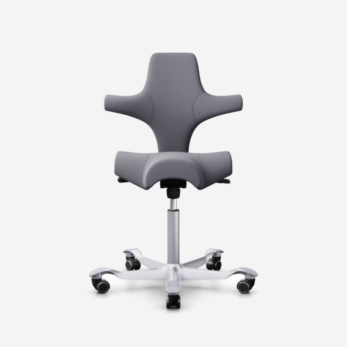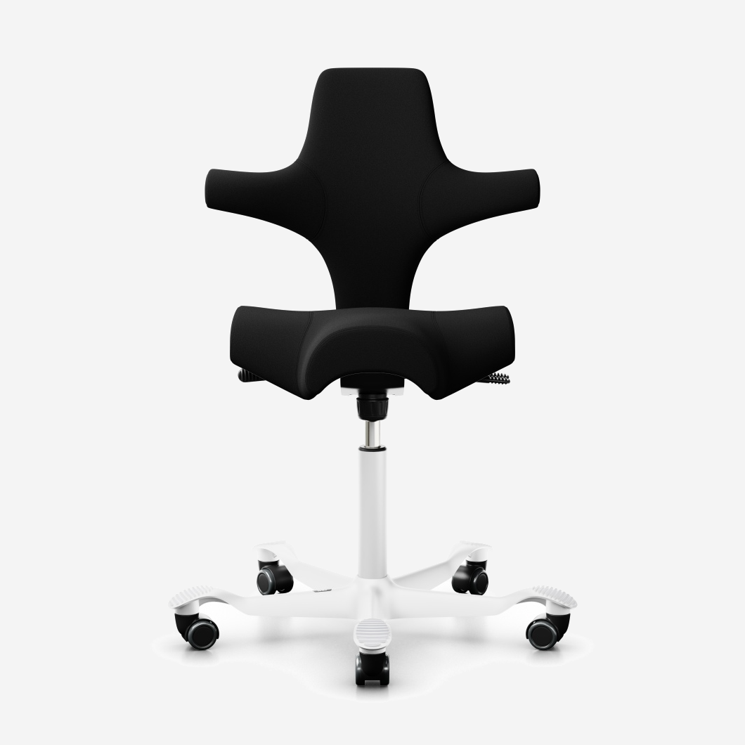 Der HÅG Capisco 8106, ein klassischer Bestseller, verfügt über einen verstellbaren Sattelsitz, der von einer niedrigen bis zu einer Stehposition reicht und so dynamische Bewegungen fördert und gleichzeitig ein ausgewogenes Sitzen gewährleistet.