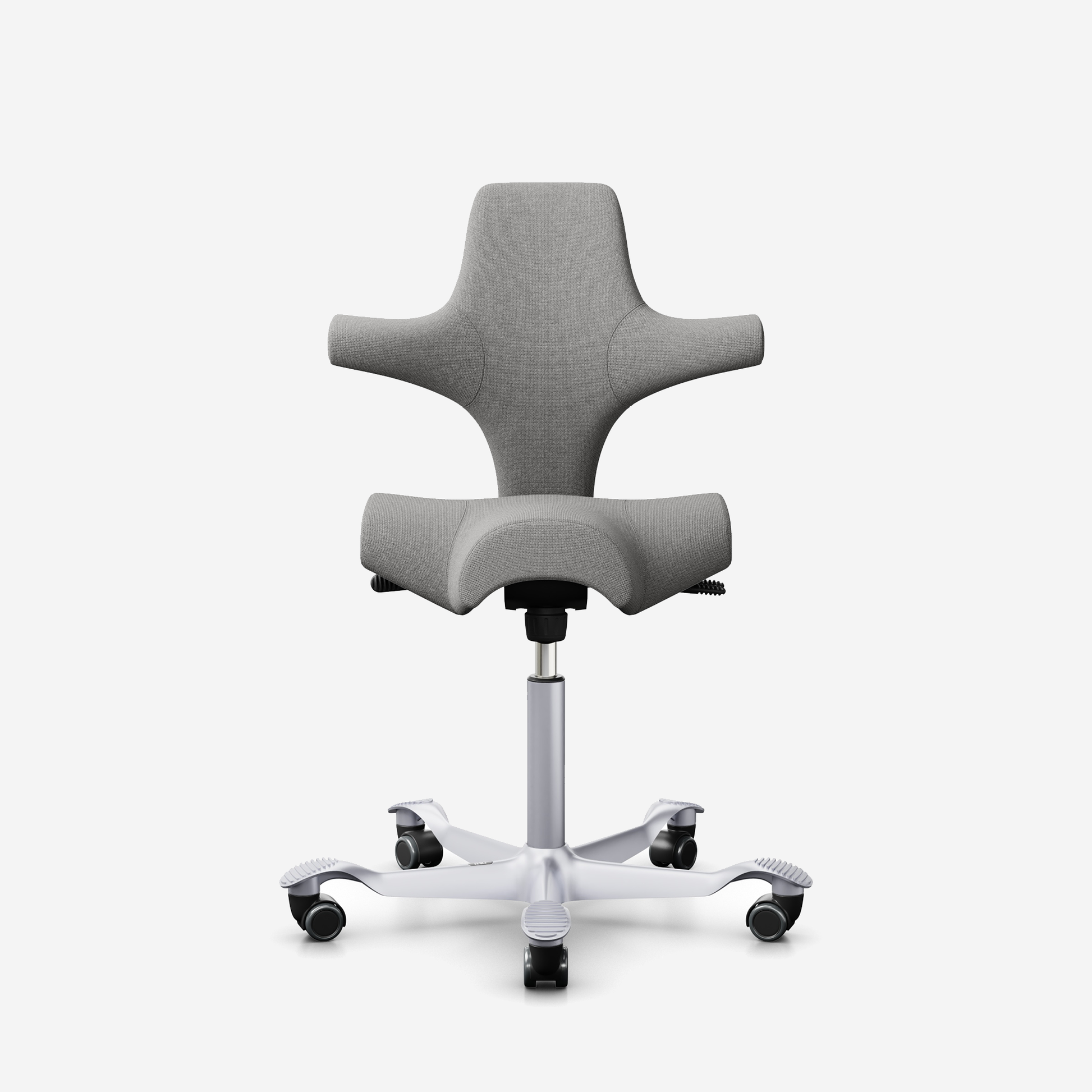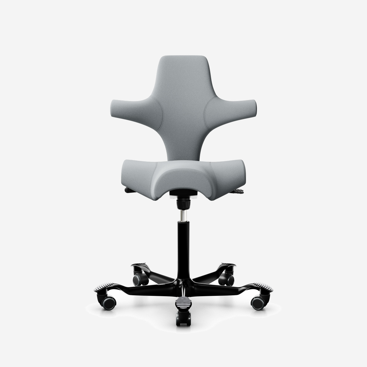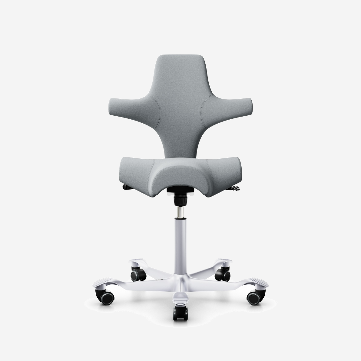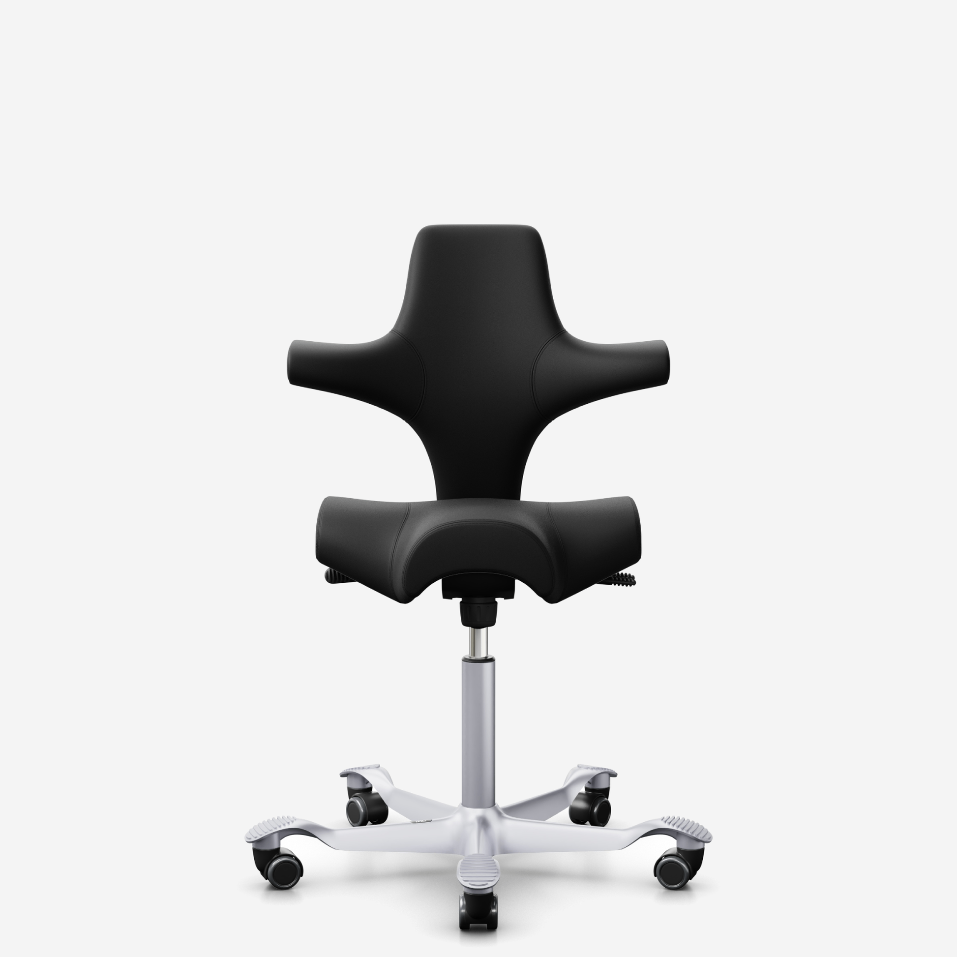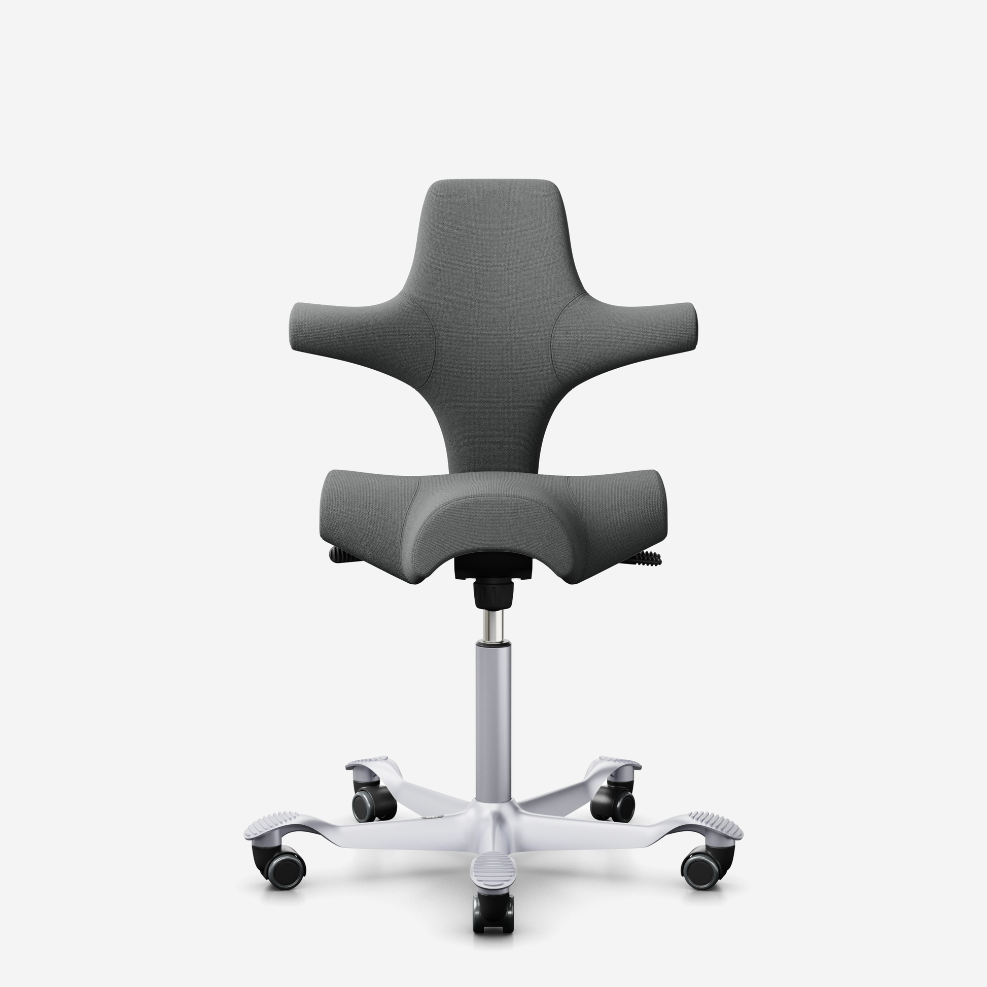 Der HÅG Capisco 8106, ein klassischer Bestseller, verfügt über einen verstellbaren Sattelsitz, der von einer niedrigen bis zu einer Stehposition reicht und so dynamische Bewegungen fördert und gleichzeitig ein ausgewogenes Sitzen gewährleistet.