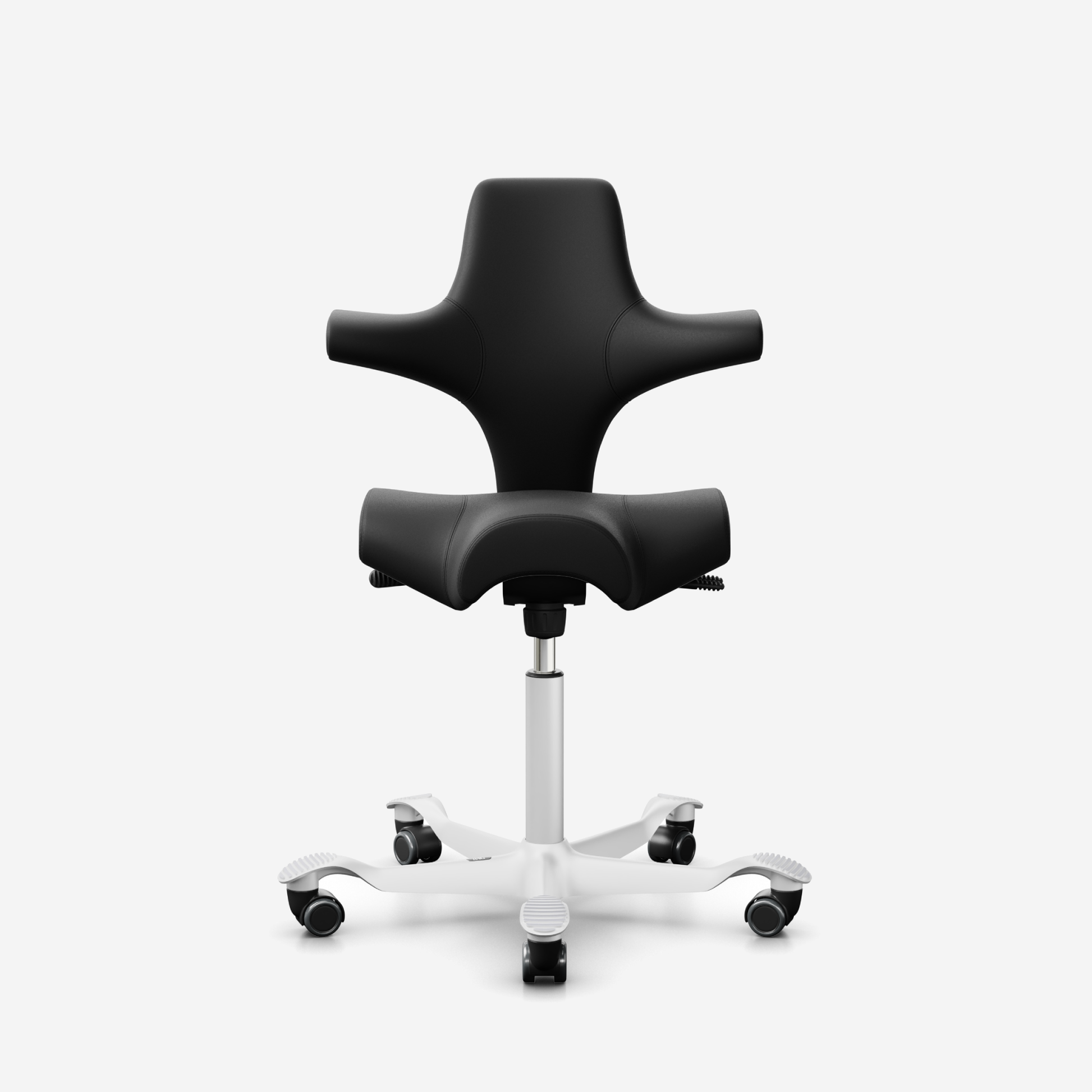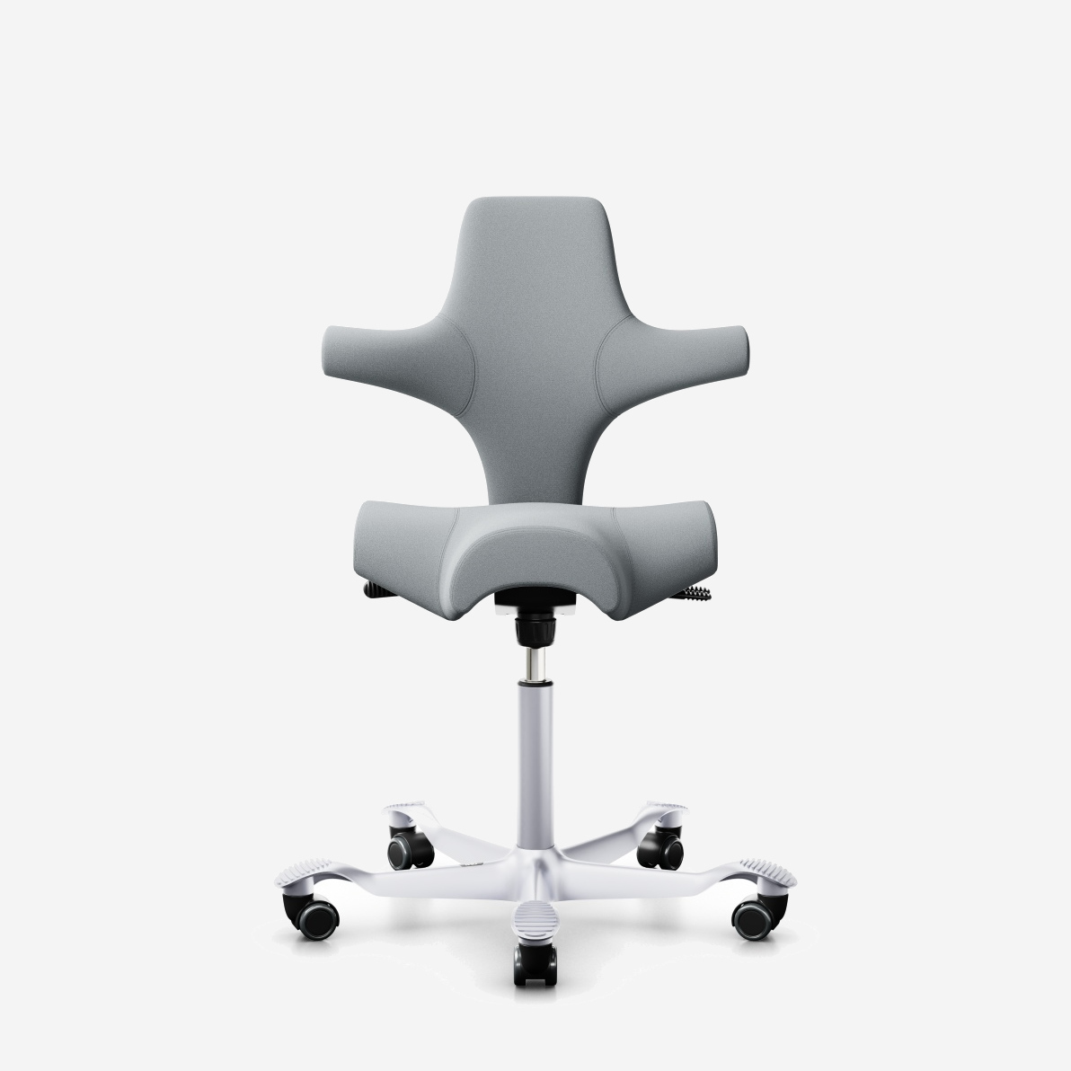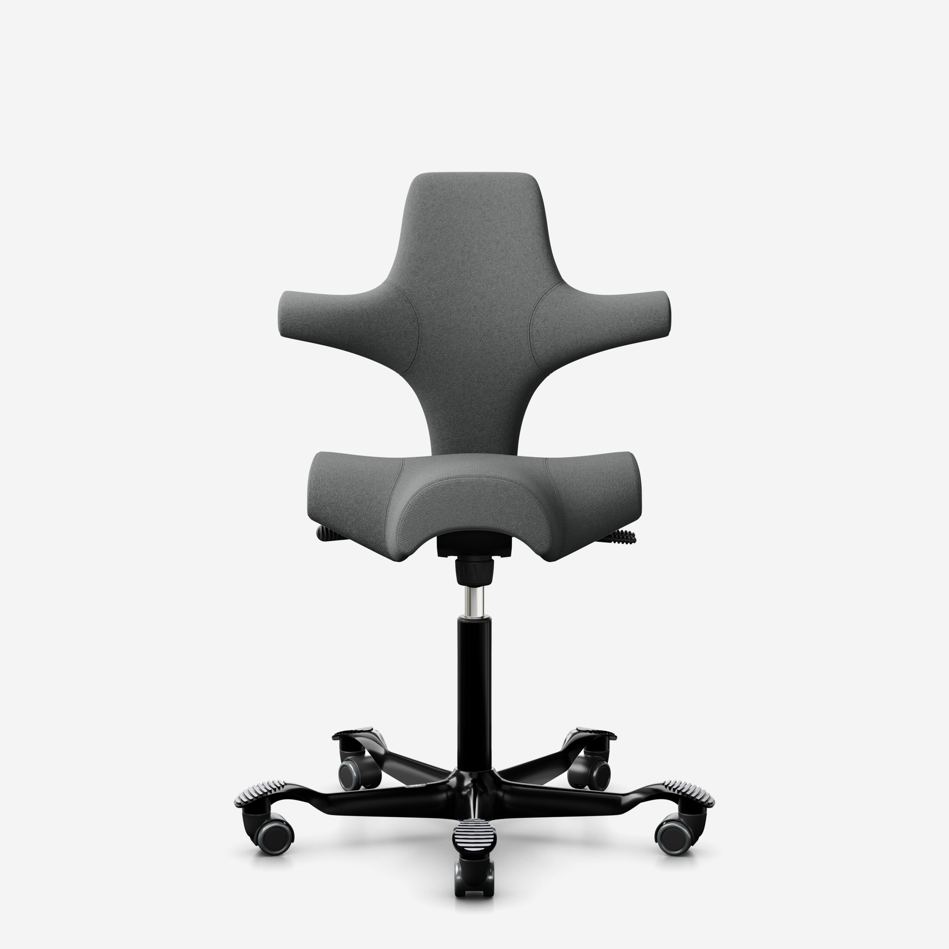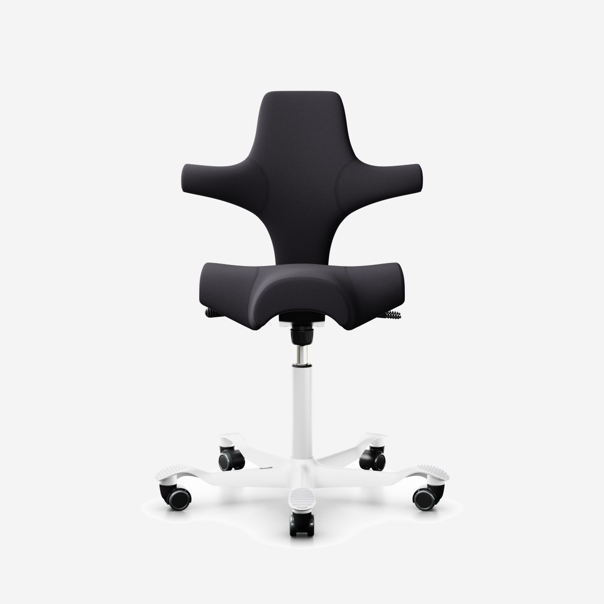 Der HÅG Capisco 8106, ein klassischer Bestseller, verfügt über einen verstellbaren Sattelsitz, der von einer niedrigen bis zu einer Stehposition reicht und so dynamische Bewegungen fördert und gleichzeitig ein ausgewogenes Sitzen gewährleistet.