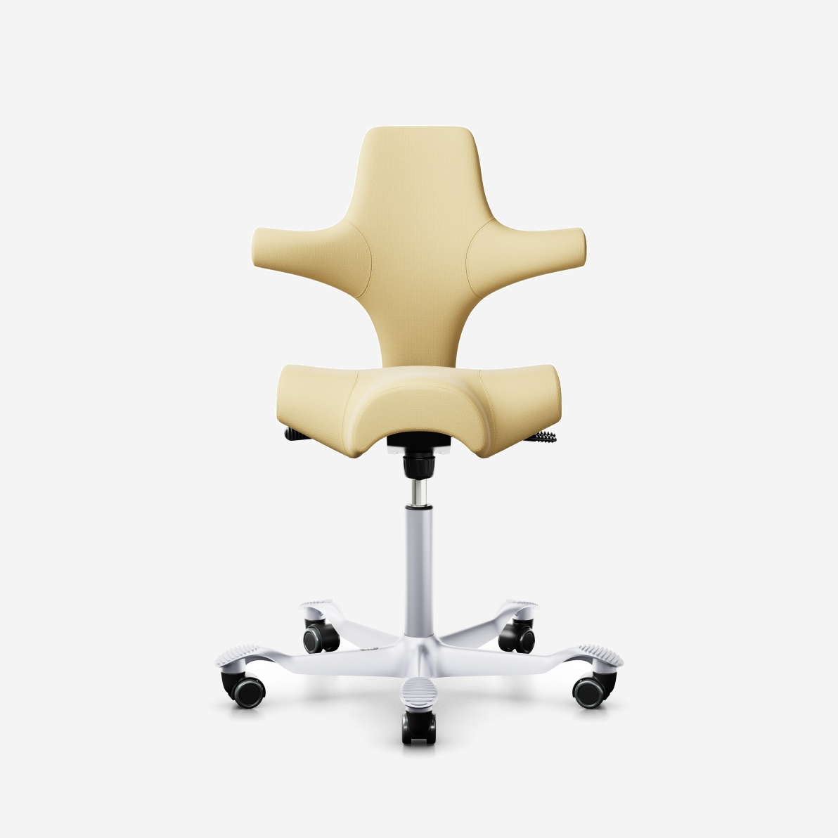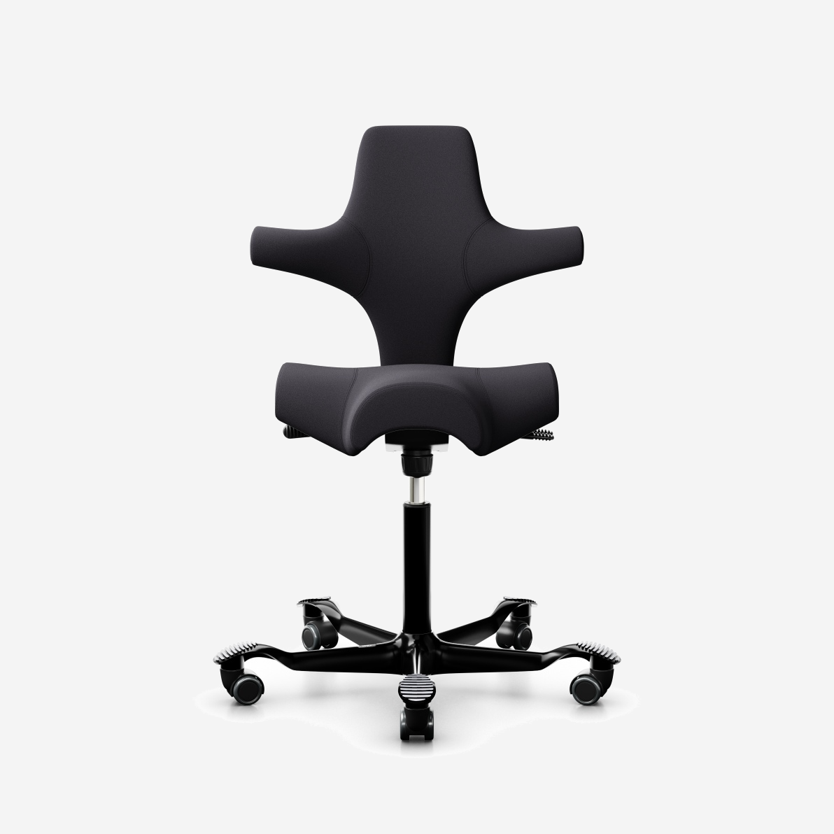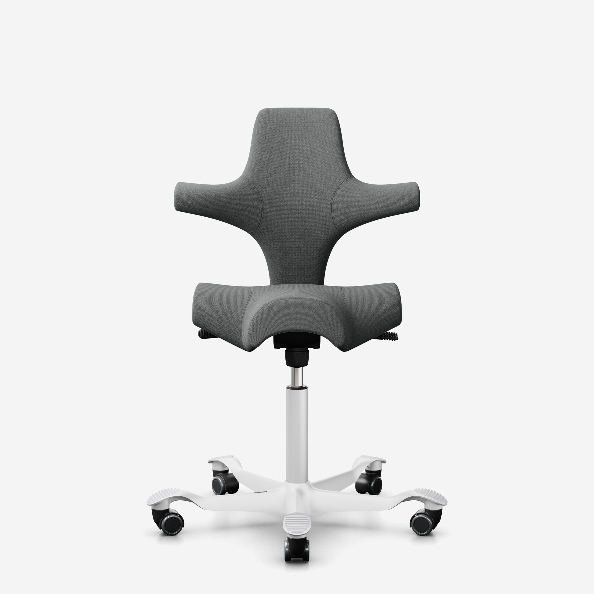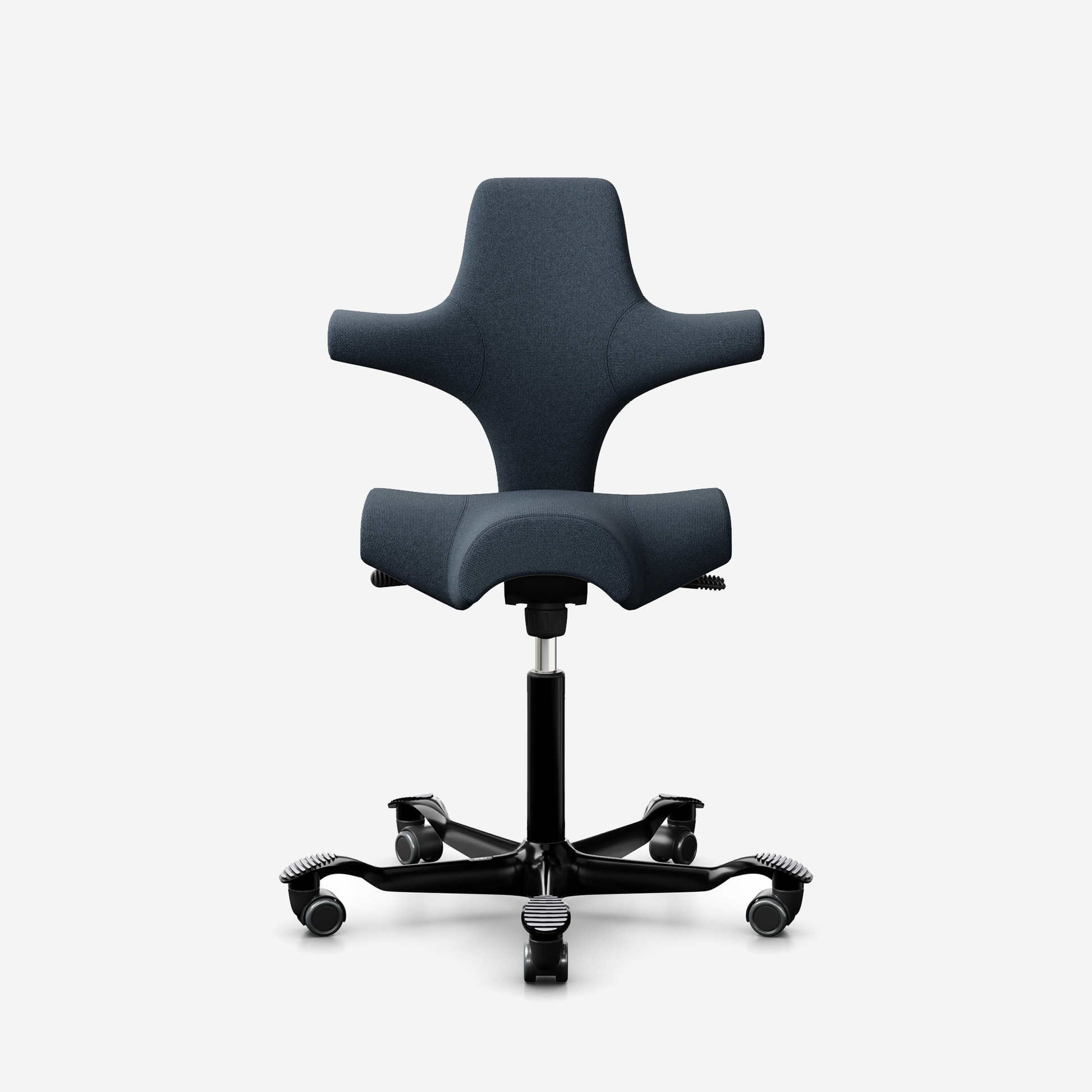 Der HÅG Capisco 8106, ein klassischer Bestseller, verfügt über einen verstellbaren Sattelsitz, der von einer niedrigen bis zu einer Stehposition reicht und so dynamische Bewegungen fördert und gleichzeitig ein ausgewogenes Sitzen gewährleistet.