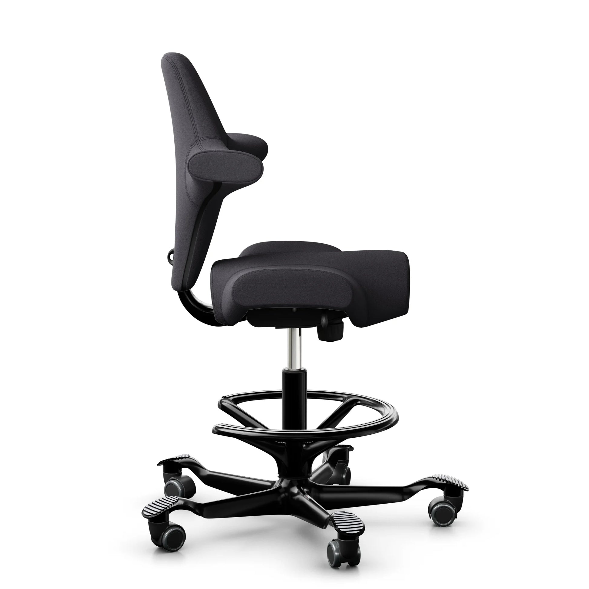 Der HÅG Capisco 8106, ein klassischer Bestseller, verfügt über einen verstellbaren Sattelsitz, der von einer niedrigen bis zu einer Stehposition reicht und so dynamische Bewegungen fördert und gleichzeitig ein ausgewogenes Sitzen gewährleistet.