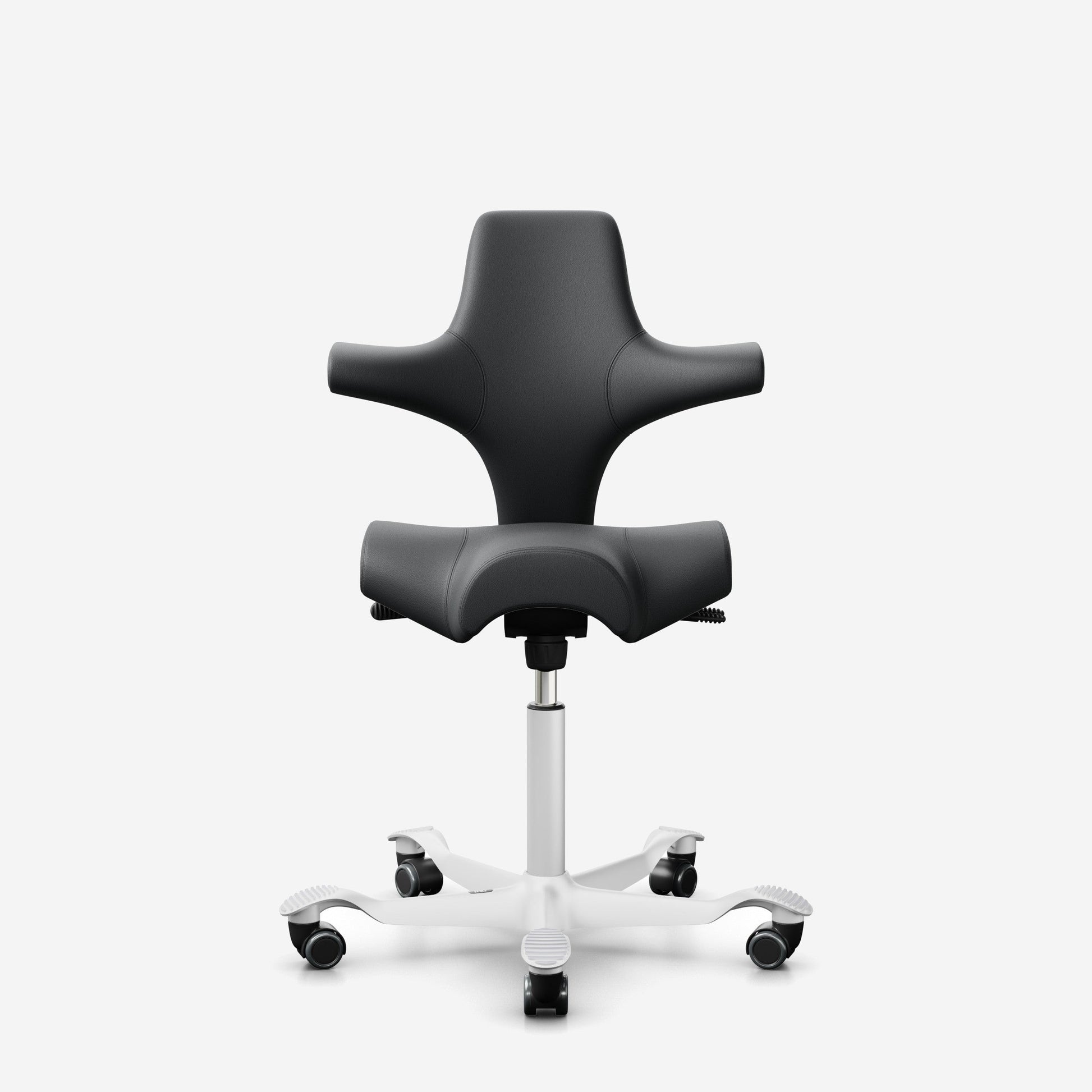 Der HÅG Capisco 8106, ein klassischer Bestseller, verfügt über einen verstellbaren Sattelsitz, der von einer niedrigen bis zu einer Stehposition reicht und so dynamische Bewegungen fördert und gleichzeitig ein ausgewogenes Sitzen gewährleistet.