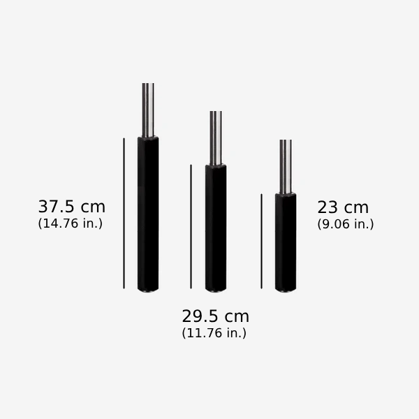 - Die Standard-Gasdruckfeder (200 mm) wird für Personen zwischen 160 und 185 cm empfohlen.