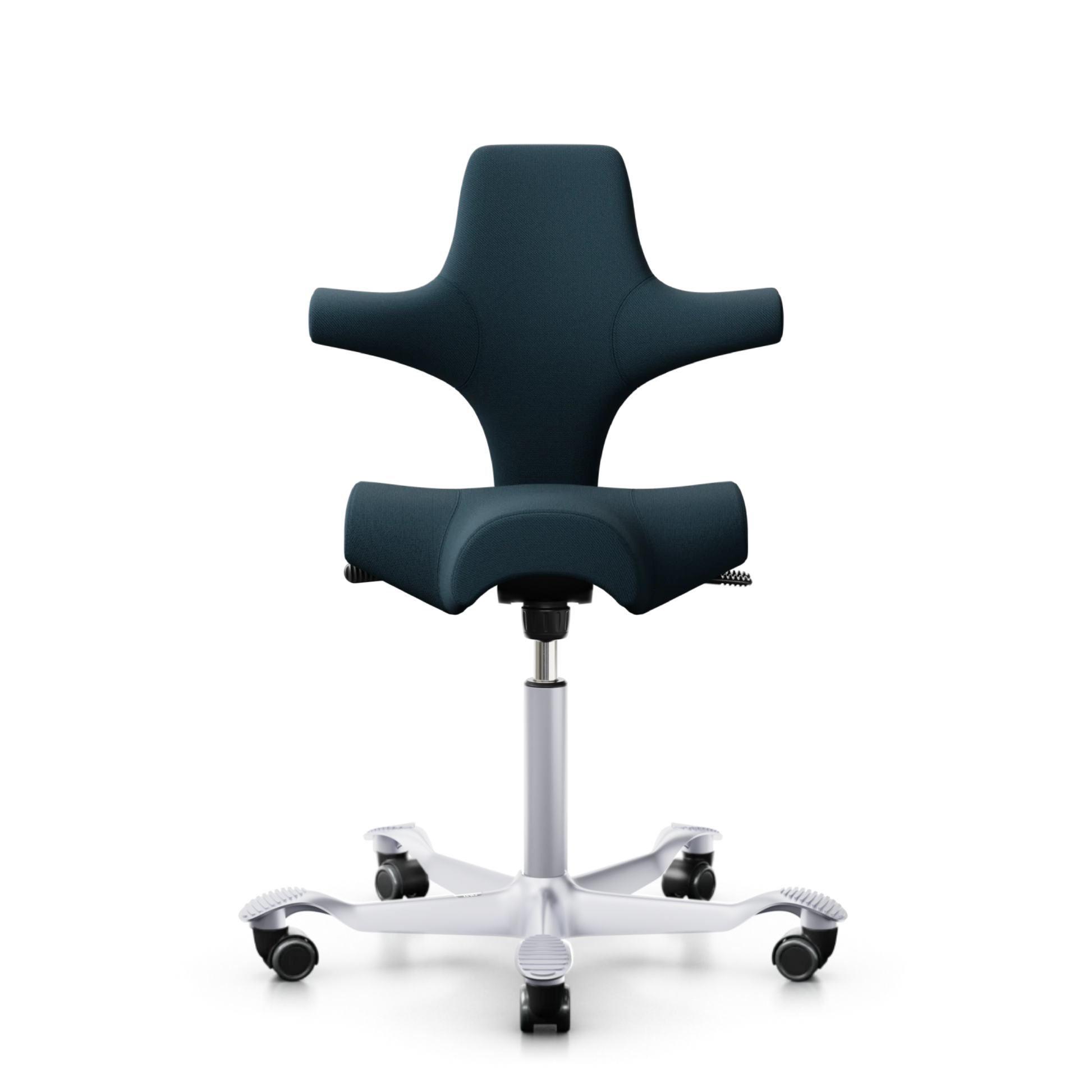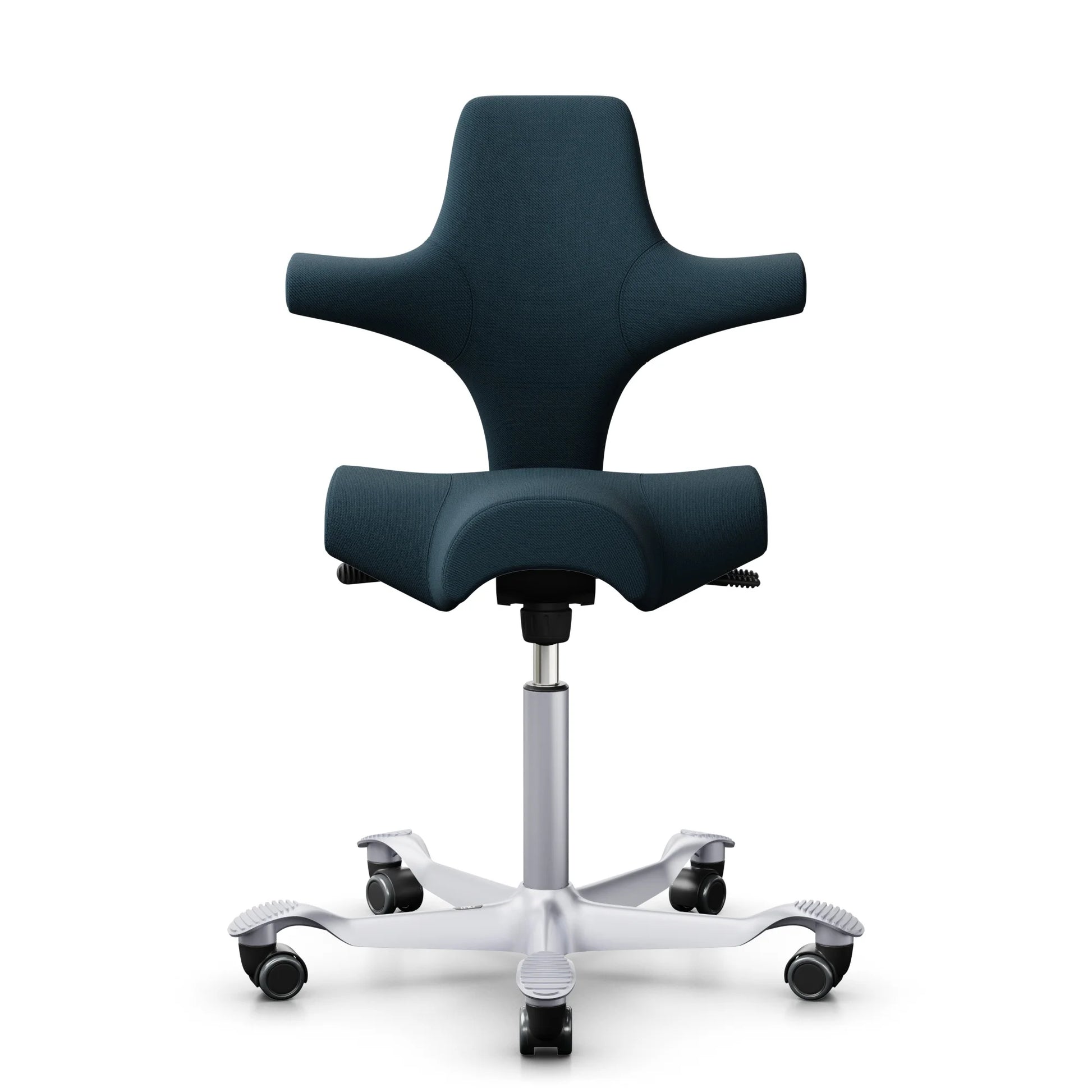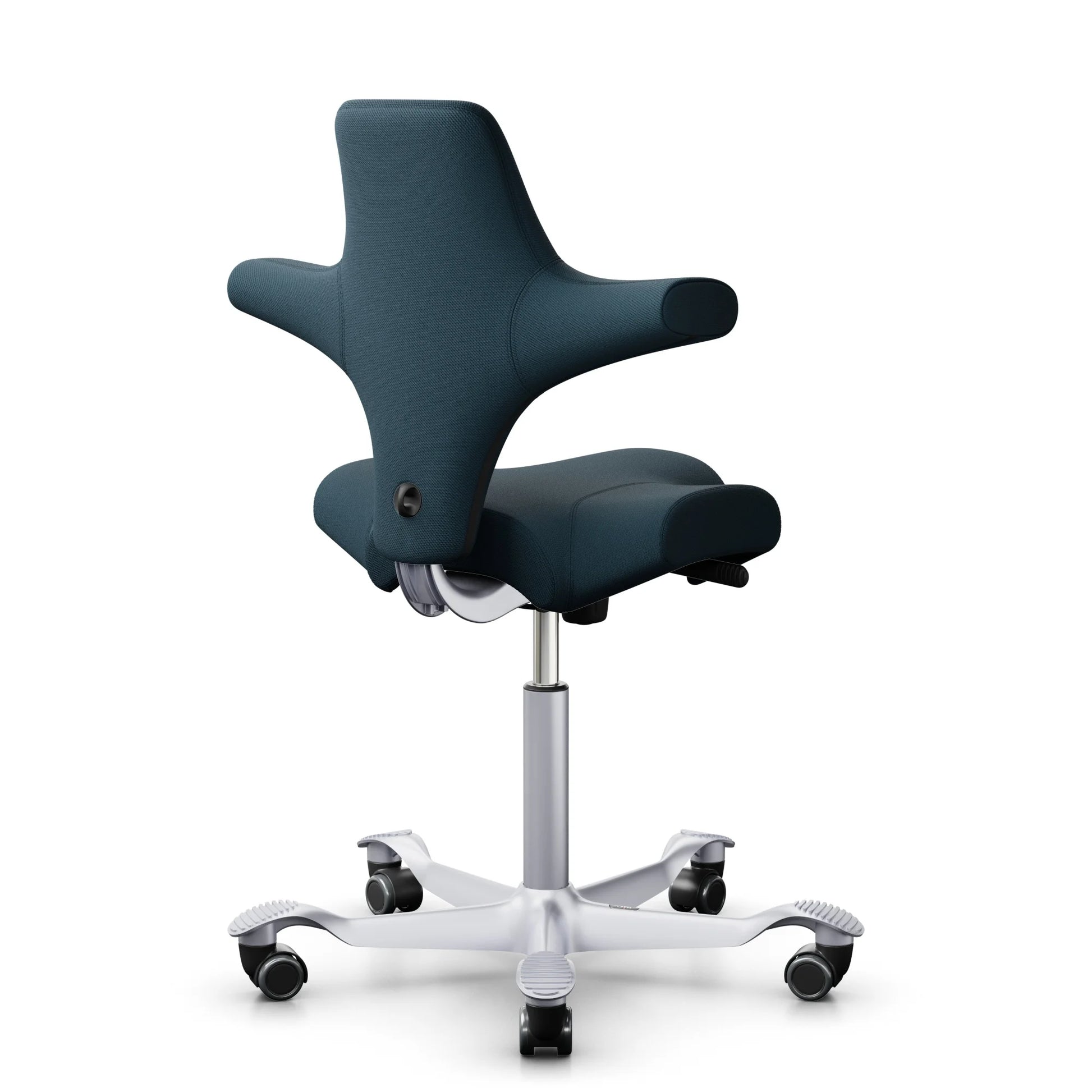 The HÅG Capisco 8106, a classic bestseller, features an adjustable saddle seat that ranges from low to standing positions, promoting dynamic movement while ensuring balanced sitting.