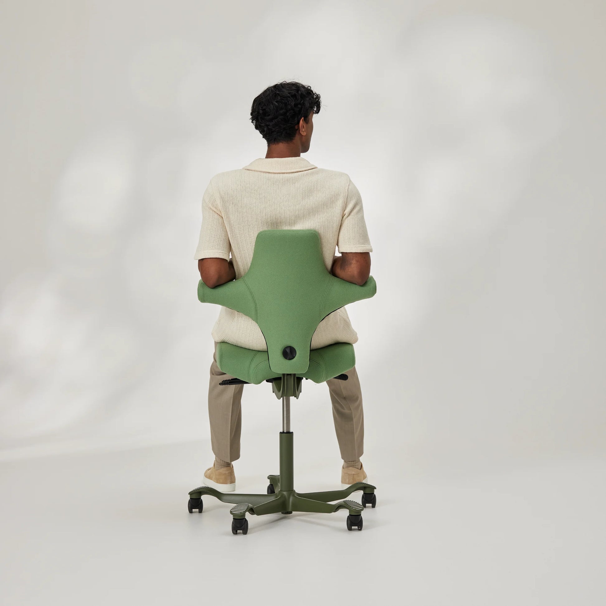 The Capisco has a fully upholstered back and seat. The Capisco Puls has a plastic backrest and partially upholstered seat. Find out more about the differences between the Capisco models.