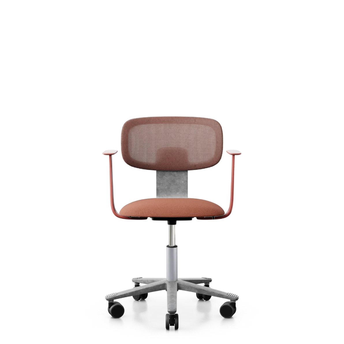 - Five star base (Ø620 mm) with foot supports in solid recycled aluminium, is available in 7 colours.